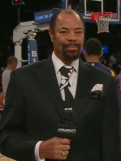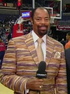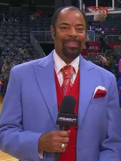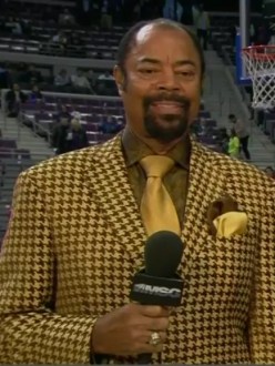 11/29/13 – Knicks @ Denver Nuggets No play for Mr. Gray! Suit: Grey with Pinstripes Shirt: White Tie: Brown with White Polkadots Grade: C
