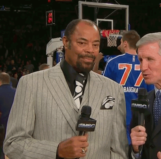 Game #3: Knicks vs. Timberwolves – 11.3.13 11/3/13 – Knicks vs. Minnesota Timberwolves After a disappointing home opener, Clyde came back with gusto to silence his critics. Suit: Grey with Black Pinstripes Vest: Grey Shirt: Black Tie: Black with White Dots Grade: B Take Our Poll Share this: Share on X (Opens in new window) X Share on Tumblr (Opens in new window) Tumblr Share on Reddit (Opens in new window) Reddit Share on Facebook (Opens in new window) Facebook Share on Pinterest (Opens in new window) Pinterest Email a link to a friend (Opens in new window) Email Like Loading...