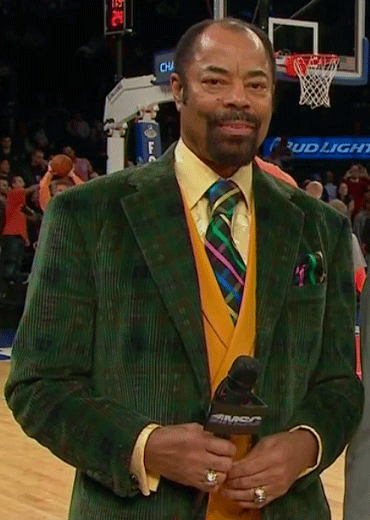 Game #23: Knicks vs. Hawks – 12.14.13 12/14/13 – Knicks vs. Atlanta Hawks The weather outside is frightful, but Clyde’s green corduroy suit is so delightful. Suit: Green Corduroy Vest: Yellow Shirt: Light Yellow with a Design Tie: Black with Color Stripes Grade: A Take Our Poll Share this: Click to share on X (Opens in new window) X Click to share on Tumblr (Opens in new window) Tumblr Click to share on Reddit (Opens in new window) Reddit Click to share on Facebook (Opens in new window) Facebook Click to share on Pinterest (Opens in new window) Pinterest Click to email a link to a friend (Opens in new window) Email Like Loading...