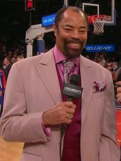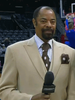 2/28/14 – Knicks vs. Golden State Warriors Clyde is looking pretty in pink! While I am reluctant to give this an A-, Mrs. SoFly is a huge fan of this look and swayed my decision. Suit: Light Pink Shirt: Pink Vest: Fuchsia Tie: Fuchsia Silver and Black Grade: A-