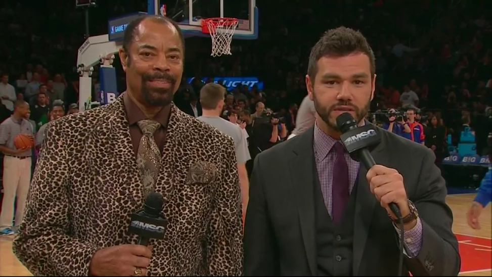 Game #47: Knicks vs. Heat – 2.1.14 2/1/14 – Knicks vs. Miami Heat Clyde breaks out his legendary Leopard Suit for this Super Bowl weekend matchup against the hated Miami Heat. Suit: Leopard Print Shirt: Dark Brown Tie: Black with a Gold design Bonus Points: Gold Tie Clip Grade: A+ Take Our Poll Share this: Click to share on X (Opens in new window) X Click to share on Tumblr (Opens in new window) Tumblr Click to share on Reddit (Opens in new window) Reddit Click to share on Facebook (Opens in new window) Facebook Click to share on Pinterest (Opens in new window) Pinterest Click to email a link to a friend (Opens in new window) Email Like Loading...