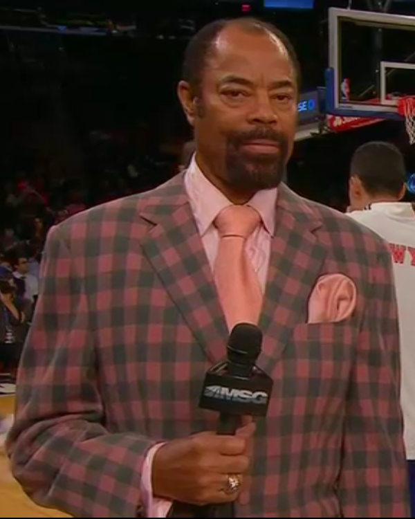 Preseason #3: Knicks vs. Raptors – 10.13.14 10/13/14 – Knicks vs. Toronto Raptors Madison Square Garden, New York Clyde is percolating in pink tonight! Suit: Pink Plaid Shirt: Light Pink Tie: Pink Bonus points for the fly pink pants that were not shown on TV Grade: B+ Share this: Share on X (Opens in new window) X Share on Tumblr (Opens in new window) Tumblr Share on Reddit (Opens in new window) Reddit Share on Facebook (Opens in new window) Facebook Share on Pinterest (Opens in new window) Pinterest Email a link to a friend (Opens in new window) Email Like Loading...