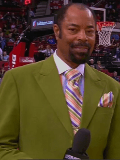 12/31/14 – Knicks @ Los Angeles Clippers Clyde wore this suit on 12/5 against the Hornets, but I am not going to deduct any points since it’s New Years Eve and the bubbles remind me of champagne. Suit: Silver with Black Dots Shirt: Black Tie: Silver Grade: A