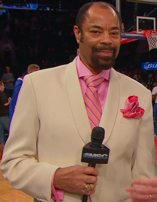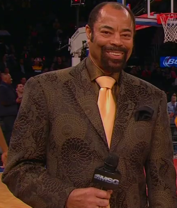 Clyde wore this jacket with a plain white shirt and a brown polka dot tie for Game #7 against the Hawks. I like tonight’s ensemble much better.