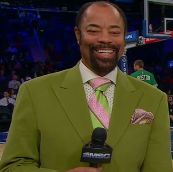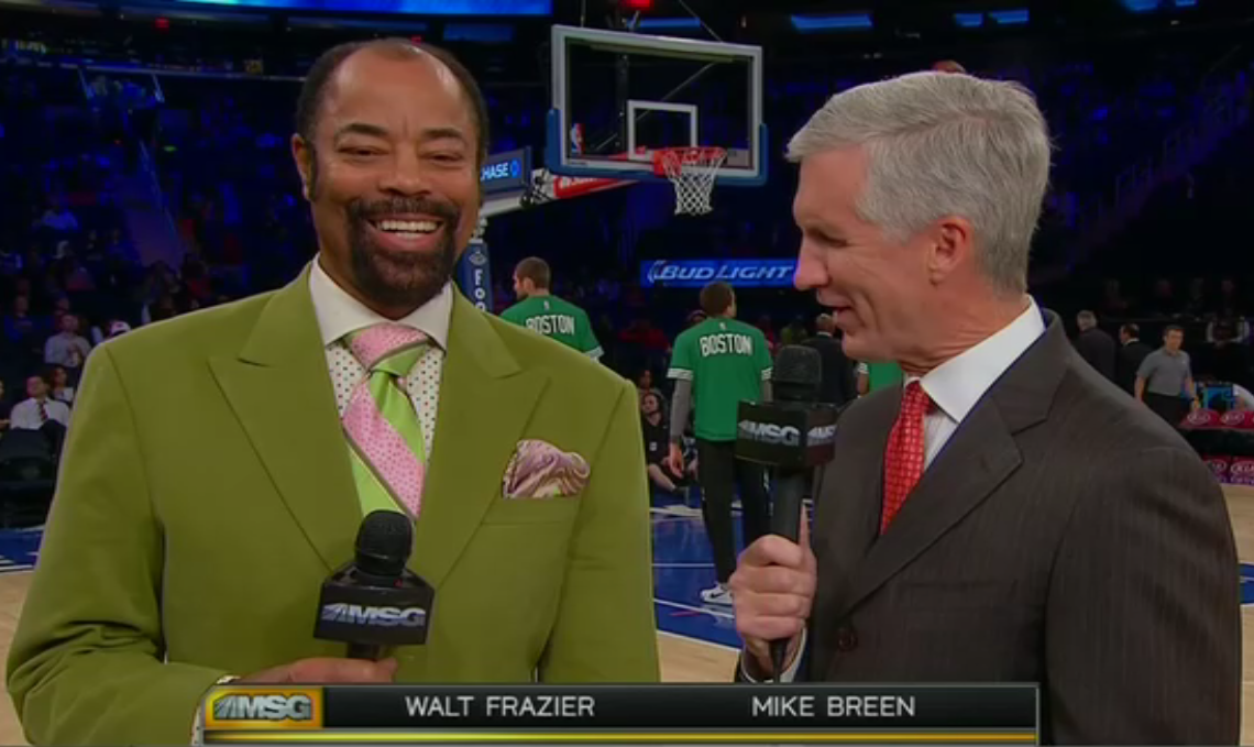 Clyde doesn’t hold back for the last home preseason game. The pink and green tie along with the fly dot shirt really puts this look over the top.