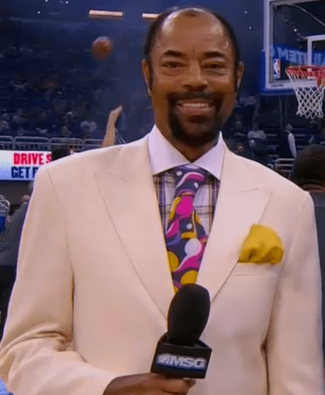 Bonus points for the matching gold pants and cream colored shoes not shown on TV.