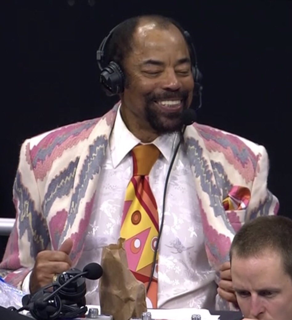 Bonus points for the pink pants not shown on TV