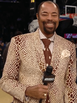 3/31/18 – Knicks vs. Detroit Pistons Clyde is beasting and feasting on the night before Easter! The Living Legend shakes and bakes in snake for tonight’s game against the Pistons and Blake! Suit: Snake Skin? Shirt: White with Brown Stripes and Dots Tie: Brown with White Spots Grade: A+