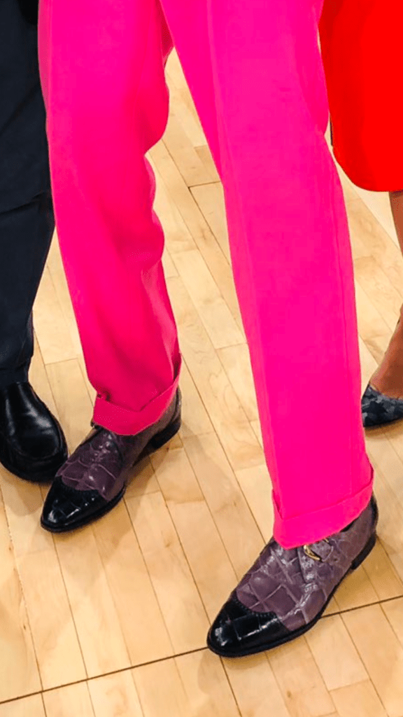 Bonus points for the hot pink pants and fly shoes not shown on TV