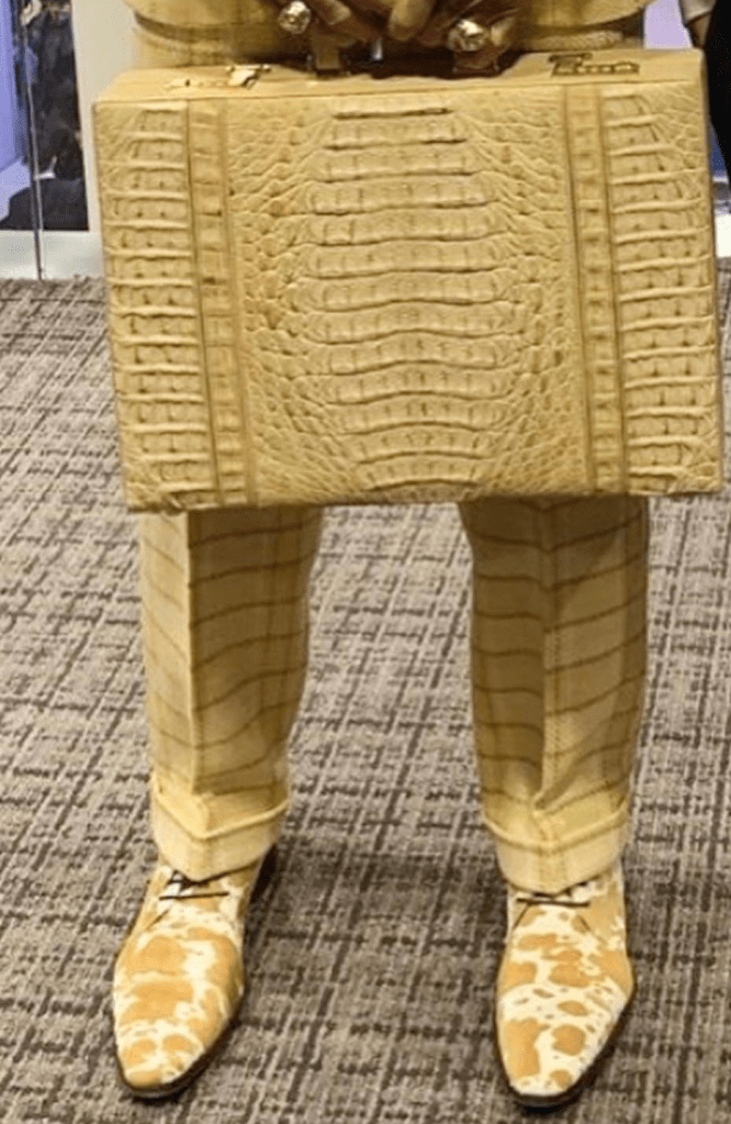 This suit is just fine for tonight’s game after the trade deadline. The cow shoes and fly tie save this ensemble from the doldrums.