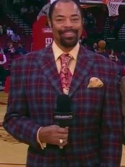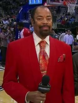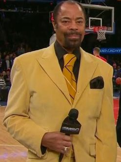 1/7/14 – Knicks vs. Detroit Pistons It might be the coldest night of the year, but Clyde made sure to bring some heat to the Garden. Suit: Yellow Corduroy Shirt: Black Tie: Yellow with Black and White Stripes Grade: A